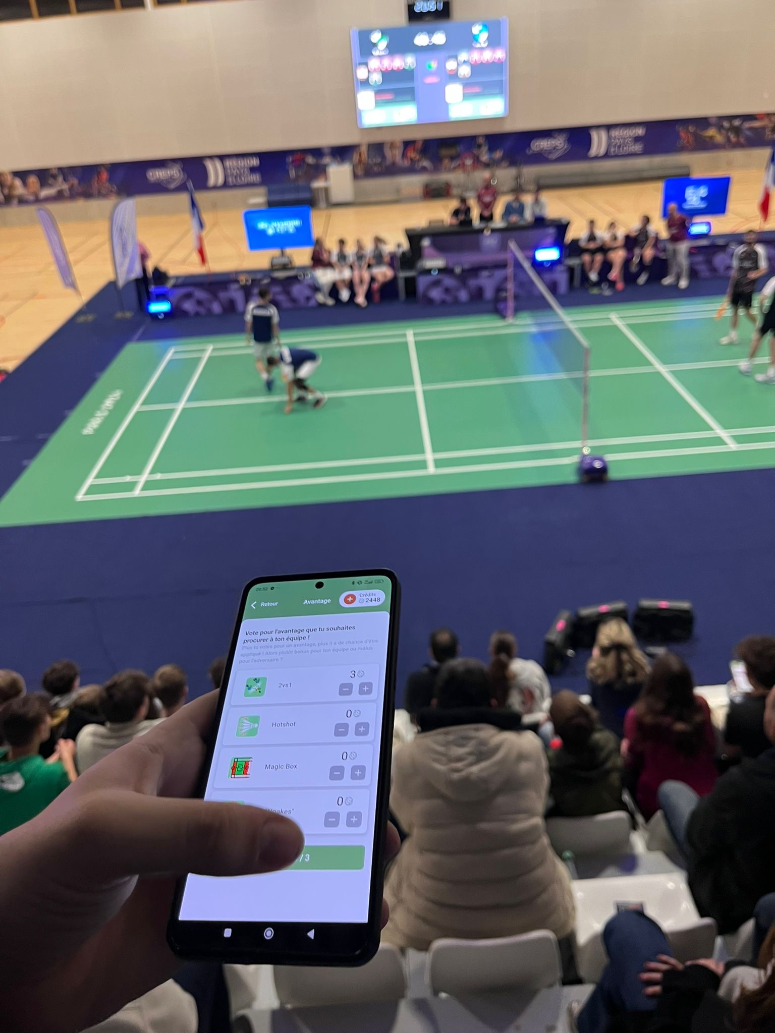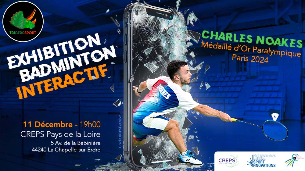 Soirée d’exhibition de badminton interactif Tricerasport en présence de Charles Noakes (médaillé d’or Paris 2024) au CREPS Pays de la Loire à Nantes.